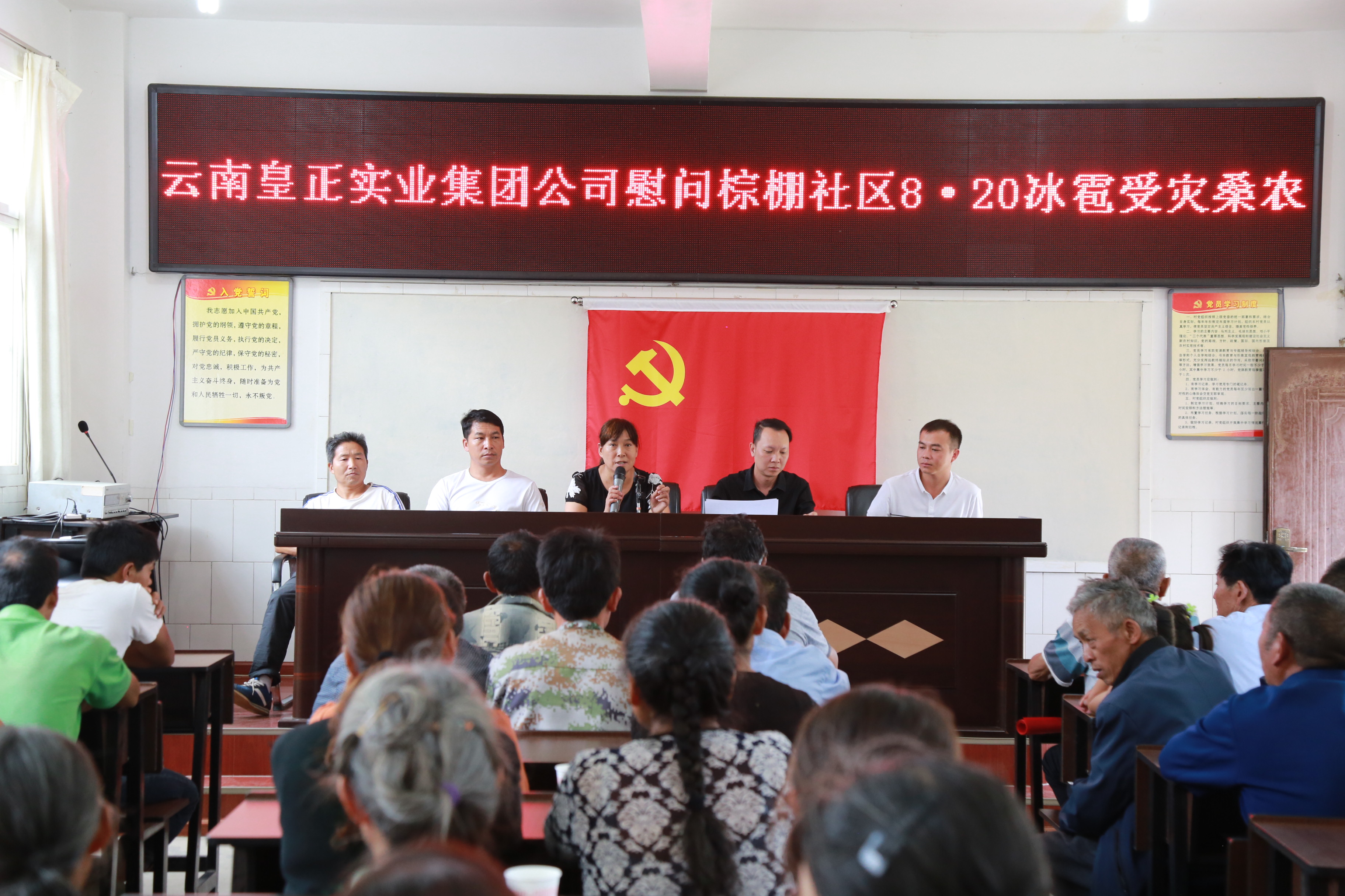 攜手同心,情暖八月----皇正集團(tuán)慰問(wèn)受災(zāi)桑農(nóng) 災(zāi)害無(wú)情人有情,皇正集團(tuán)踐行企業(yè)發(fā)展助推抗災(zāi)救濟(jì)的使命和擔(dān)當(dāng),2018年8月25日下午,公司代表又一次來(lái)到棕棚村村委會(huì),對(duì)“8.20”冰雹受...