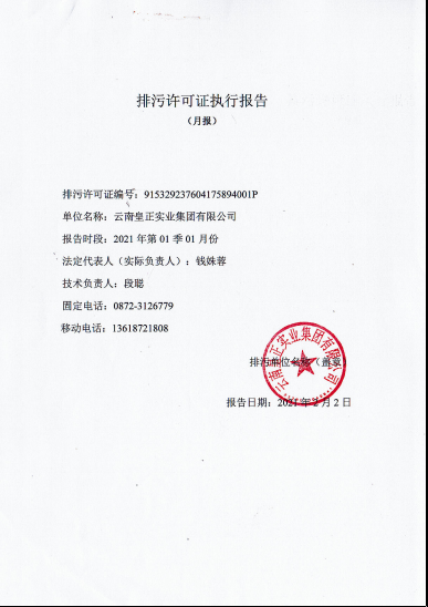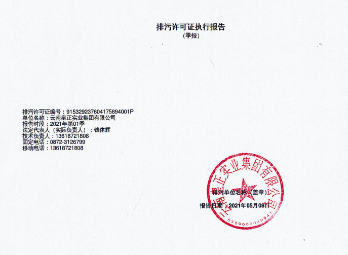云南皇正實(shí)業(yè)集團(tuán)有限公司2021年1-3季度排污許可證季報(bào) /temp/2021年1季度.pdf/temp/2021年2季度.pdf/temp/2021年3季度.pdf