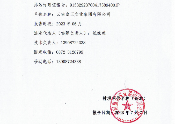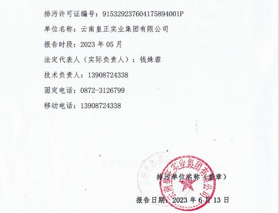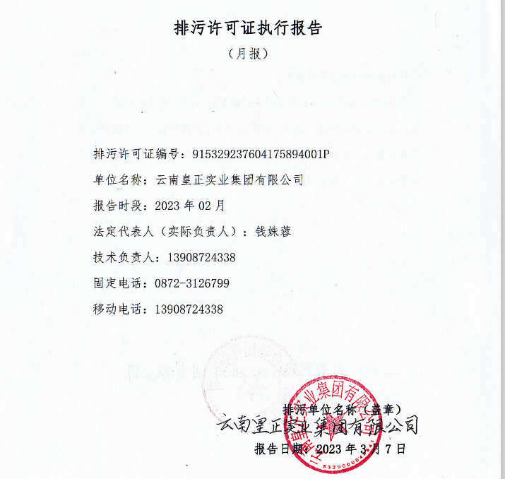 云南皇正實(shí)業(yè)集團(tuán)有限公司 2023年2月自行監(jiān)測(cè)報(bào)告 2023年2月自行監(jiān)測(cè)報(bào)告(月報(bào))
