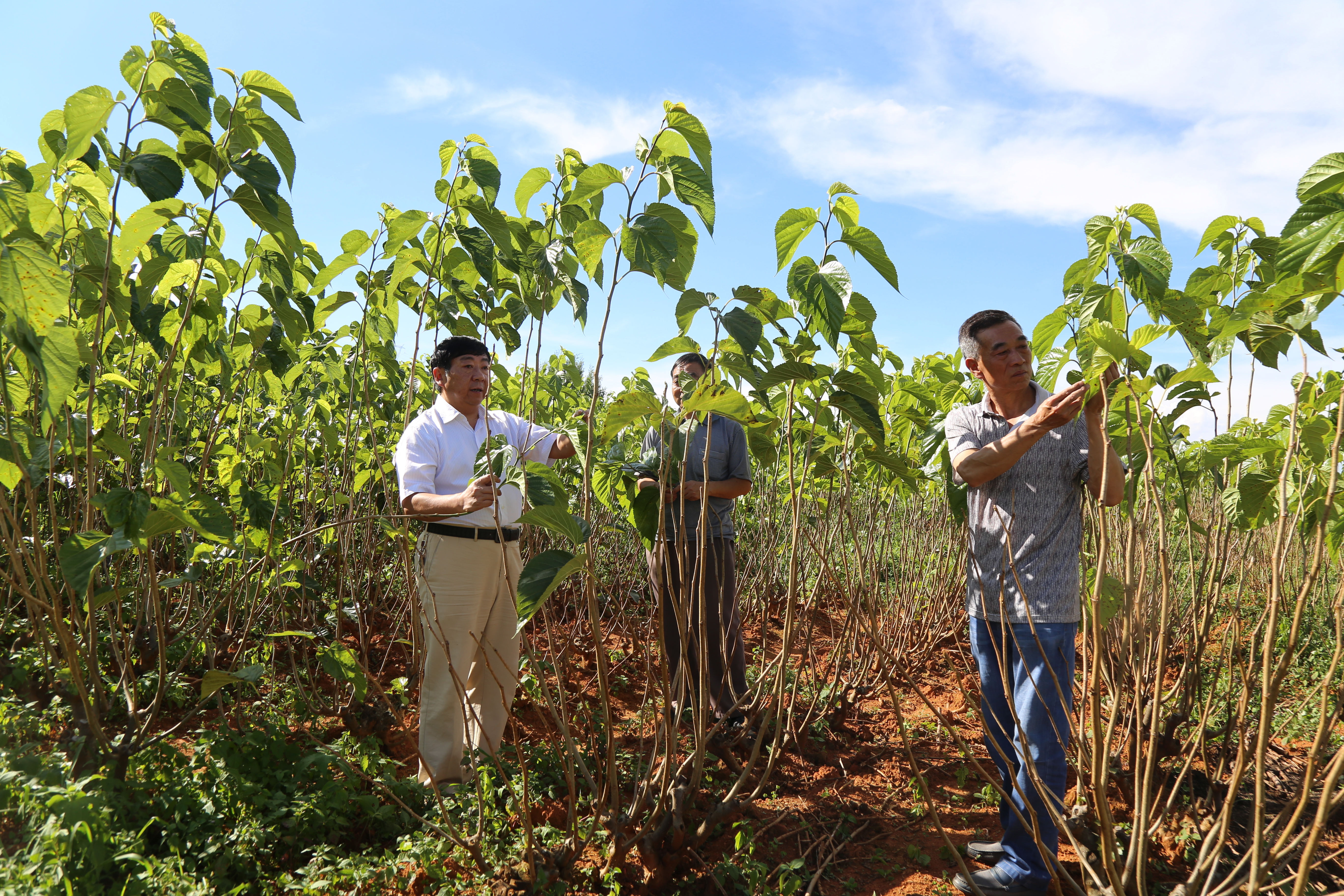 隨后,在村委會工作人員的帶領下深入桑園進行實地調(diào)研。了解目前桑葉種植基地的規(guī)模管理模式、桑葉長勢、有無病蟲害等情況。